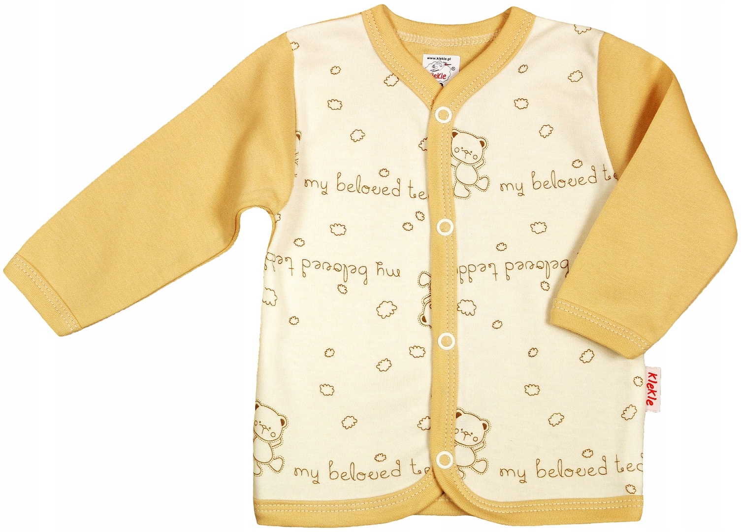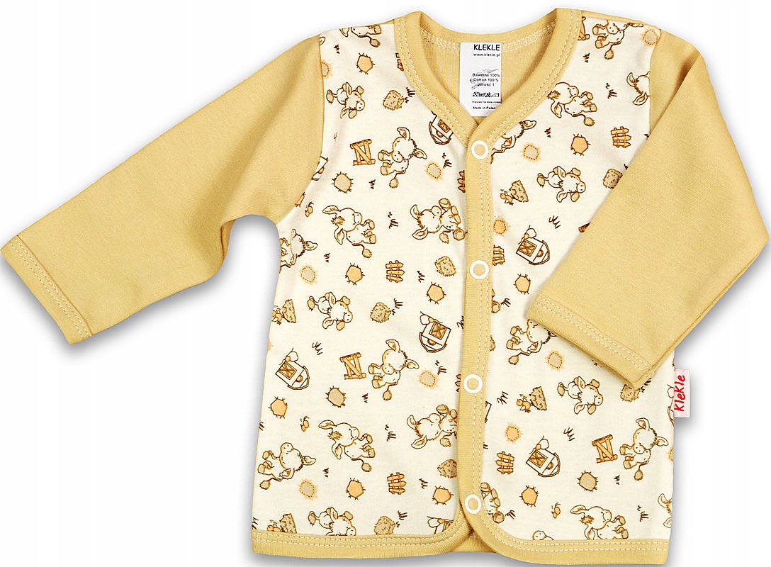 Kaftaniki posiadają wklejane metki, które po usunięciu nie drażnią delikatnej skóry niemowlęcia.