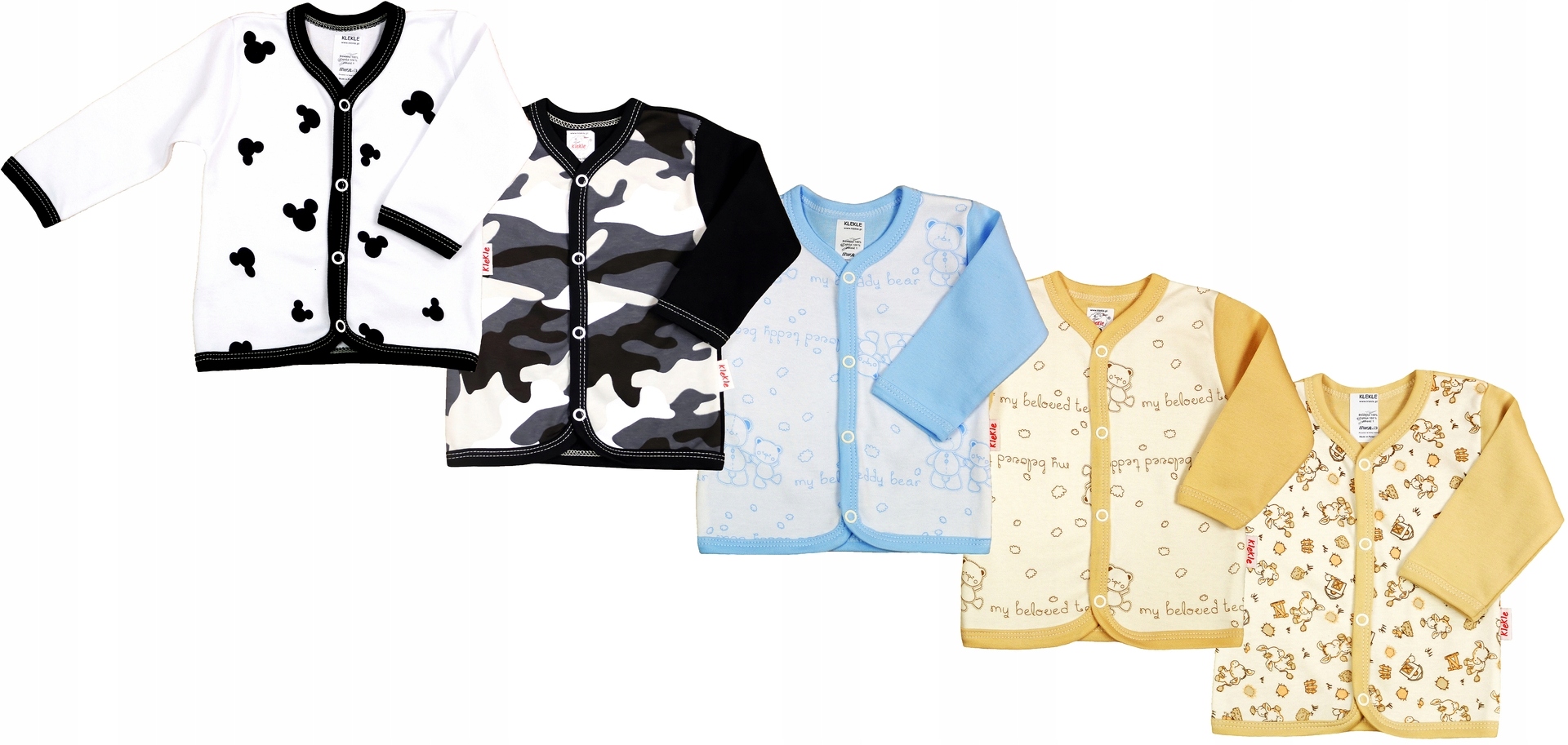 - Rozpinane przez środek: rozmiar 56 na 3 napki, 62 i 68 na 4 napki.
