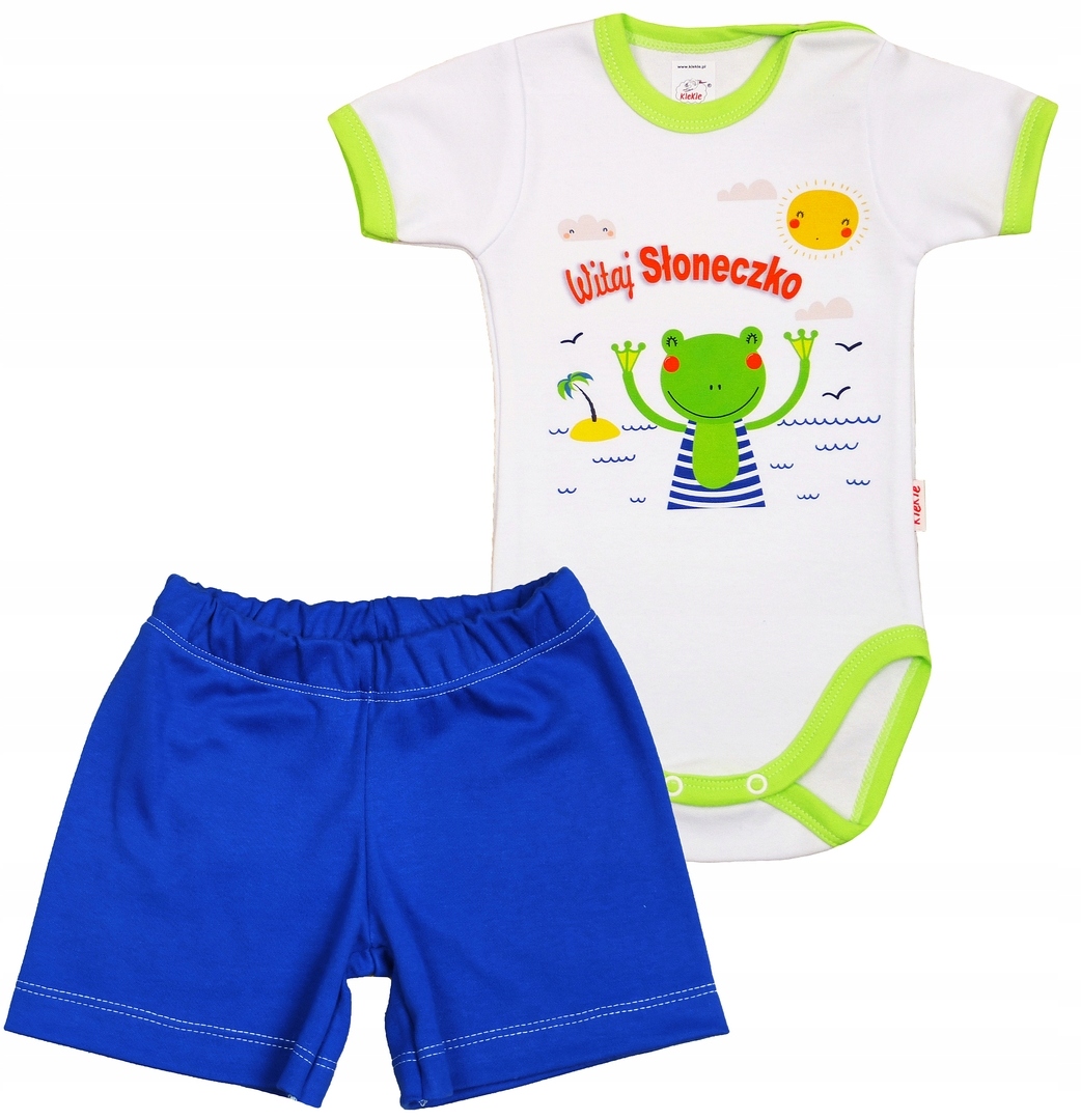 BODY z krótkim rękawkiem, z nadrukiem + Krótkie SPODENKI gładkie w rozmiarze 104,