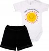Komplet składa się z BODY z krótkim rękawem oraz krótkich SPODENEK z podkrojem.